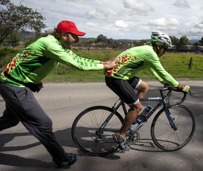 Anécdota: En la subida nos encontramos con pedalistas que participaban en una prueba contrarreloj, uno de los ciclistas que venía dándole duro pues parecía rezagado nos pasaba algo molesto como si la vía estuviera reservada solo para ellos. Cuando pasó a Pulga le dijo que se hiciera a un lado y literalmente “le sacó la piedra”, Pulga le respondió que si andaba mucho porqué iba en la cola, quien dijo miedo, el ciclista lo insultó y por poco tenemos box al mejor estilo de la Vuelta a España. Guillermo aceleró el paso para ayudar a Pulga en la pelea pero cuando alcanzó al “contrarrelojero veloz” se dio cuenta que Pulga se había quedado y lo había dejado solo, así que decidió mejor pasar silbando para disimular, pues el contrincante estaba como grande