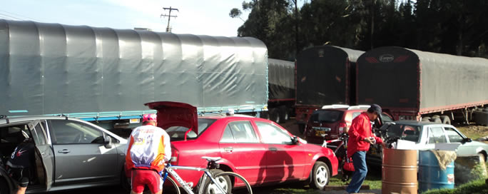 El parqueadero que usualmente utilizamos en la Caro, hoy estaba repleto de tracto mulas cargadas con trigo programadas para descargue el día de mañana en los silos de Almaviva. Afortunadamente dejaron espacios que copamos.