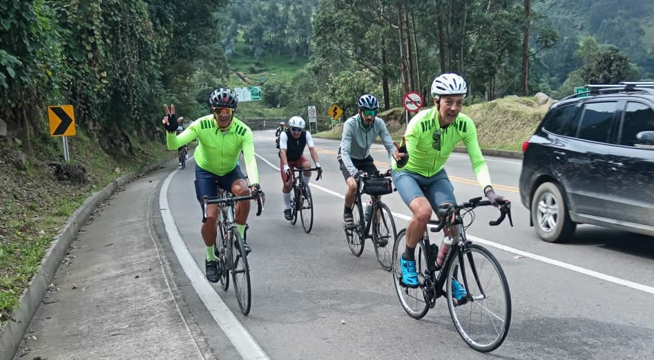 Me cuentan los que se regresaron por la autopista, el grupo lo lideraron Wilfran y Duberney a un promedio de 33 klm/h y rematando a 43 klm/h en Almaviva, velocidad que para ellos que están asistiendo a un grupo con apoyo de profesionales que les dan las indicaciones de cómo manejar las relaciones de acuerdo al terreno, para mejorar el rendimiento, lo mismo que les corrigen en la postura de las manos, para no generar tanto estrés en los hombros, y en últimas manejar adecuadamente las pulsaciones para no realizar desgastes innecesarios, al final el grupo les siguió el paso y parece ser que lo que cada uno hace nos está sirviendo para llegar los domingo con un buen tanque para mover relaciones duras y un buen promedio de kilómetros que sobrepasan o están por los 80 kms 100 klm que para un fin de semana está muy pero muy bien.