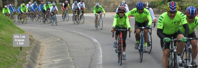 Ya lo hiceeee, aquí vamos con el grupo de pedalistas camino al Alto de las Arepas, descubrimos que Rivera quien se había detenido para desalojar líquidos era de este paquete y ha tenido que hacer una persecución de película. Los verdes tratan de imponer el ritmo, pero Matíz se adelanta para poner un falsito paso buscando que Rivera trate de conectar, los verdes insisten con Santa Cruz a la Cabeza. Estamos ya pasando el peaje, huyy qué locos unos cogen por la izquierda en contravía otros por el carril derecho de los carros, el vigilante corre a detenerlos pero no atina a cuáles infractores parar y apenas se le escucha : “me deben el peaje carajo… “ Esto parece una película de dibujos animados.