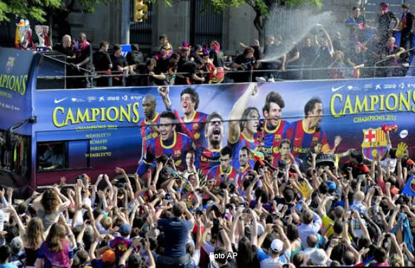 Todos defienden y todos atacan, como la naranja mecánica de Holanda en 1974, pero mucho más veloz, más exquisita y más letal en su veneno. Todos defienden y todos atacan, aquí no hay vedettes, si acaso lo que hay es estrellas, pero lo importante es la constelación entera. La supresión de los sistemas de poder centralizado, la apertura de una red con múltiples centros simultáneos e intercambiables, una verdadera máquina de guerra, la prioridad del equipo por encima del crack individual. Un orden táctico riguroso llevado a través de una entrega absoluta en cada balón luchado. Toda la magia del Brasil de 1970 y el de 1982, juntas, mezcladas, y agitadas con un chorro de velocidad y de esfuerzo físico al más puro estilo del fútbol inglés. Táctica de base para el desarrollo de su estrategia fulminante, basada en el control, en la posesión de la pelota, hasta hacerla suya por 90 minutos. Tener el balón, abrir los espacios, manejar los tiempos, provocar faltas, quebrar la moral de sus contrincantes, matar y rematar. Dale el balón al Barça y te mata: a los contrincantes que lo enfrentan, y al público que muere de placer, siempre un poco, al experimentar su juego.
