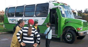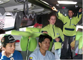 Los asistentes tomaron puesto en la "Guanábana" como le pusimos al bus verde de Tour Star que nos asignó Cafam y a las 7 en punto arrancamos hacia la avenida Boyacá con La avenida la Esperanza en donde recogimos a tres caminantes más, Nobile, Luis Eduardo Pulgarín y Alberto Otálora. La Guanábana conducida por don Jorge tomó la calle 13 hacia el occidente.