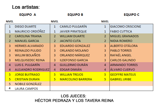 Luego de la prueba realizada en la subida al Alto de las Margaritas y del análisis del nivel actual de nuestros pedalistas y pedalistos observado en las dos recientes salidas, procedimos a conformar los equipos que participarán en la Clásica de la Amistad 2015 que comenzará en pocas semanas. Previamente hicimos varias consultas y este fue el resultado, sabemos que el perfecto equilibrio es imposible pero le garantizamos que se hizo el mejor esfuerzo, para que todos queden contentos:
