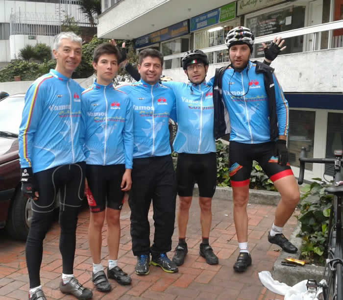 Por fin habíamos terminado la Granfondo, en total fueron 6 horas a un promedio de 24 km/h. Conclusiones: mas allá del cansancio, estuvo muy bueno el recorrido, la organización y la platica q nos ahorramos por ir de patos! Pienso que en pocos años la participación de extranjeros y de colombianos será mayor, eso si ojalá bajen el costo de la inscripción (una barbaridad 250.000 ), convirtiendo este evento en un referente a nivel mundial. Por ejemplo una de las Granfondo más concurridas en Italia y en el mundo es "La nove colli", en el 2015 participarán mas de 13.000 personas y el costo de la inscripción es de 60 euros, considerando el poder adquisitivo en Europa es algo accesible para todos!!Nos vemos el Domingo, ciao bambini!