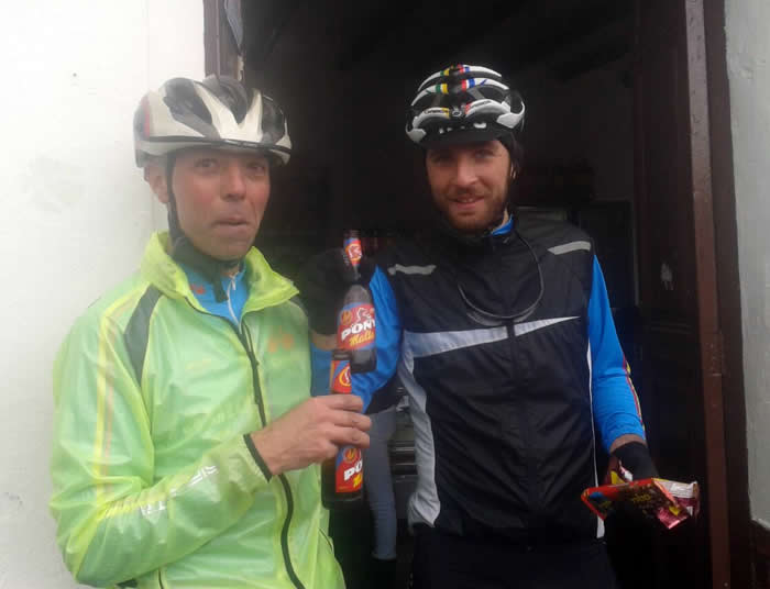 El primero de los BRs que alcanzamos fue al aerodinámico Reinaldo, su casco de cromo lo protegia de la lluvia Nos despedimos de el con un Ciao Bambino!!. El frio era cada más tenaz a medida q subíamos .. unos 3° C y la lluvia no paraba. Sentía mis zapatillas como de 4 kg cada una.
