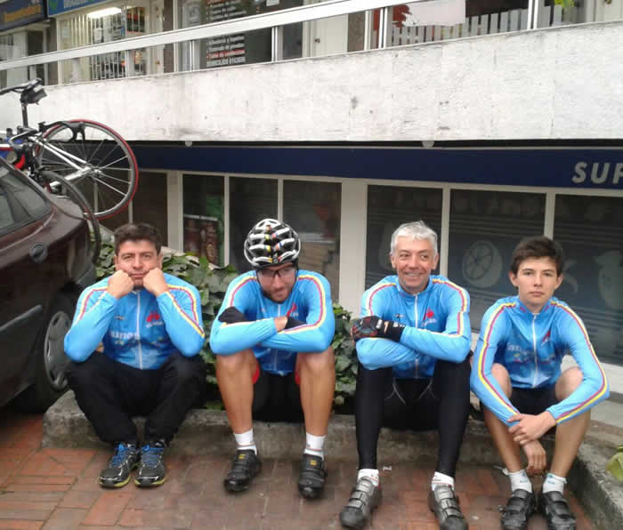 Fue el primer CicloBr en cruzar la metà, nos contarà su hazaña: " Chino, Yo pare en Guatavita, me tome un caldido pa ese frio tan hp…y decidi seguir para Sesquilé hasta cruzarme con ustedes, pero despues de 3 km no los veia venir y decidi irme pa la calera a terminar mi granfondo.No fui a Sopo como preveía el recorrido pero pues mejor asi" El Chinazzo completo màs de 100 km se demorò como 5 horas, fue el primero de nosotros en cruzar la meta. Casi el mismo recorrido + los km guatavita.- sesquile -guatavita completaron Willy, Diego y Reinaldo. Llegando unos 30 min después!! Mientras a nosotros nos faltaba coronar Arepas! Como sea llegamos arriba..el Giaco en la cima me espero el la tienda pa compartir arepa con Gatorade. Nos faltaba solo bajar a la Calera!