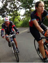 Mientras Miguel y yo esperábamos el carro acompañante, apenas a un kilómetro y medio adelante ya el calor y la cuesta había cobrado sus dos primeras víctimas: Huguito y William Trejos, quienes no aguantaron el voltaje y se bajaron su bicicleta. William incluso tuvo que devolver atenciones.
