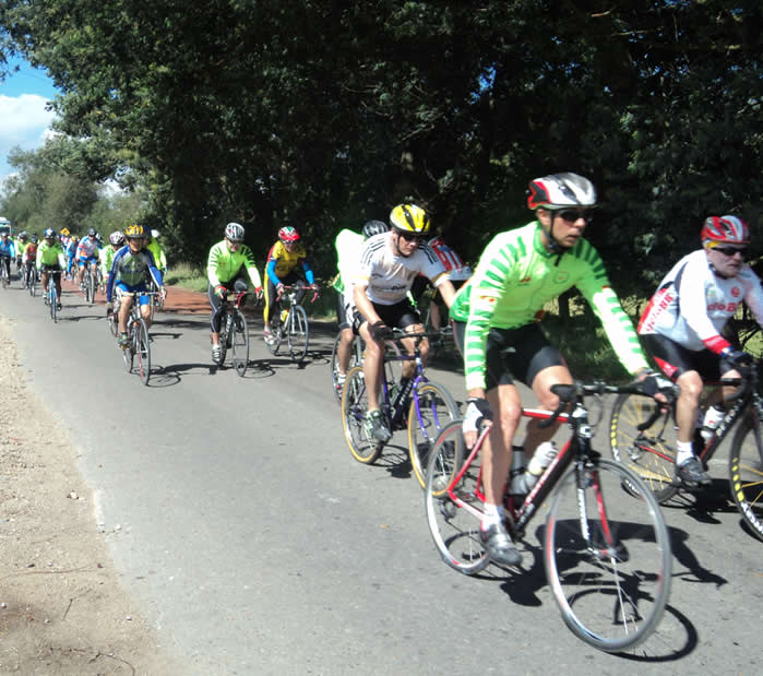 Pasando el peaje se aumentó el ritmo, nos perseguía un numeroso grupo de "patos" que no se despegaban, intentamos reduciendo la velocidad pero se adaptaron, no querían perder el cupo en ese tren. Melquisedec traía ganas de desquitarse de Pulga y este aplazó el reto y le envió a su hijo a que le disputara la llegada.
