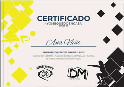 Pues quiso compartirles el cartón de grado que recibió al cumplir con los requisitos en las rutinas de skipping, salto de lazo, sentadillas con lazo, y planchas. Felicitaciones. Tranquila, aún puede obtener posgrado.