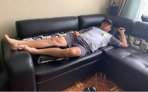 Otro que no para es Guillermo, ya vimos que hace spinning, bici en caminadora (aunque esa nadie se la creyó), y además sale de paseo por el parqueadero para calentar sus bicis y evitar que las polillas se coman sus camisetas, sabe que cuando regresemos valdrán oro, la tienda Pulgarini agotará sus existencias.