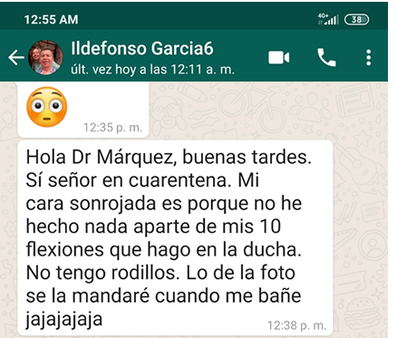 Se ve muy bien, como siempre en excelente estado físico. Estaremos muy atentos para cumplirle la cita el próximo domingo para la primera clase por Zoom.
