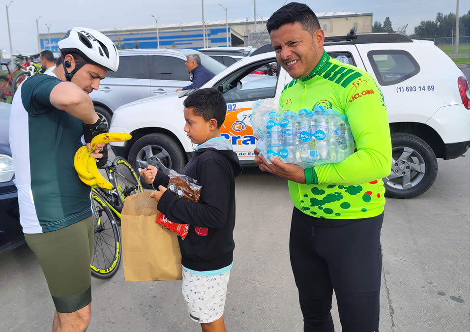 Previamente Gustavo había repartido galletas, bananos, agua y bocadillos a sus compañeros, con la ayuda de su sobrino Juan David y de su señora madre doña Doris.