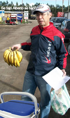 El entusiasmo lo sembró a la salida el conductor elegido, nuestro amigo Alberto Rivera, quien apareció con una nevera portátil con hielo y llena de mandarinas peladas listas para comer para el camino. Como si fuera poco sacó de su carro varios racimos de bananos. No nos acabábamos de reponer de la agradable sorpresa cuando, de pronto apareció con varias cajas de bocadillos Veleños.