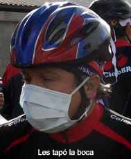 Pulga se tomó en serio el encargo del profe y retrasó un tanto en la subida animando a Villarreal, a Marcolino a Hugo Gutiérrez que ya comenzaban a sentir el rigor de la loma. Esta primera parte consta de tres subidas una detrás de la otra, que en total no suman más de cuatro kilómetros, pero que lo van minando a uno, especialmente si como ocurre uno va pensando en no dejarse del eterno rival.