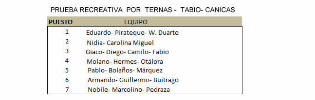 Para la segunda parte de la prueba, Tabio – Alto de Canicas teníamos previsto que se conformaran ternas utilizando los resultados de la contrarreloj individual. Nuevamente Eduardo conformó las ternas, esta vez con la ayuda de Giaco. Resultó una divertida prueba que todos disfrutamos.