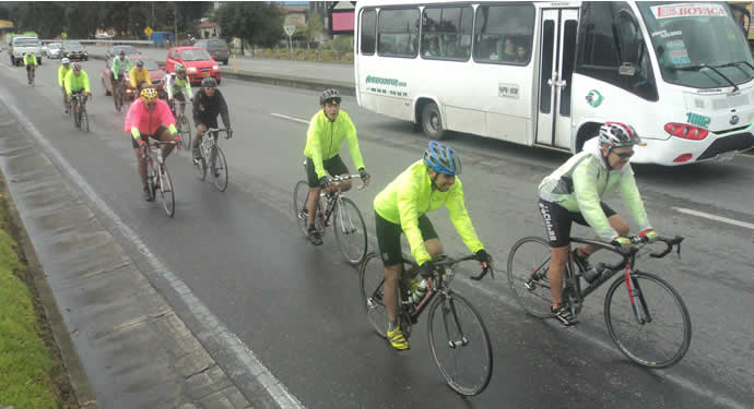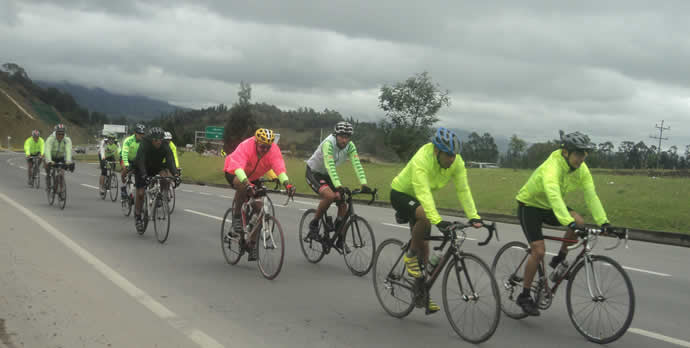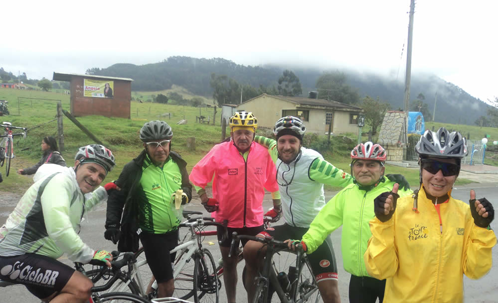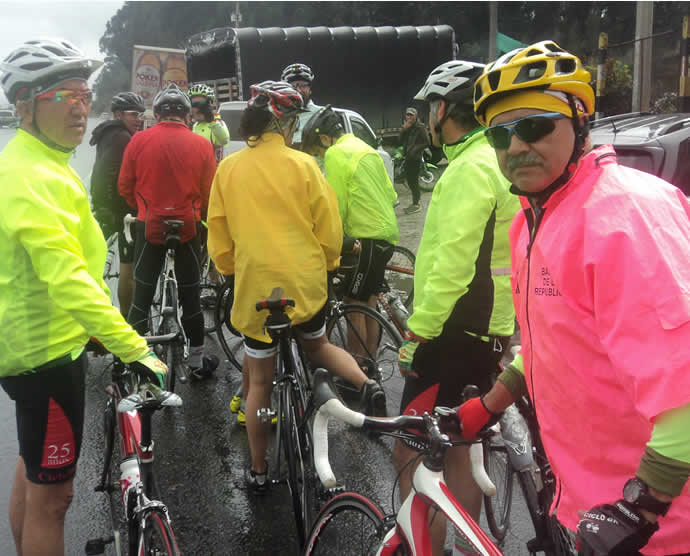 Después de Cajicá, Manuel quien venía oficiando de reportero gráfico, (lo vimos trepado en postes y muros para lograr buenas imágenes) no resistió la tentación y al ver que había salido el sol decidió unirse al grupo. Al iniciar la subida a Patiguapos Don Guillermo se olvidó de la gripa y se montó a la bicicleta. Así completamos catorce pedalistas en carretera.