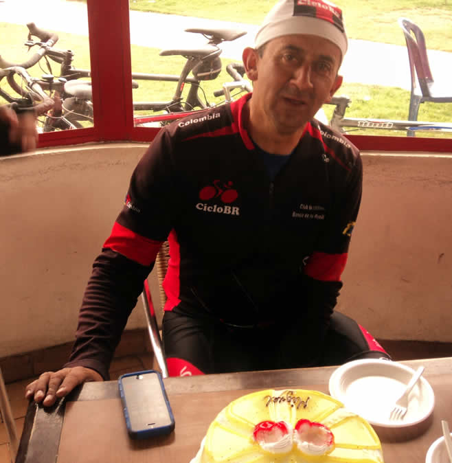 Así concluyó una agradable etapa. En Los Kioskos le celebramos el cumpleaños a Miguel Granados con una deliciosa torta que trajeron los Pulgas. El pobre Miguel se cayó bajando, un leve descuido al esquivar un tache y zuás tras al piso fue a dar, afortunadamente sin mayores consecuencias, aunque al parecer en la subida sentía el golpe..