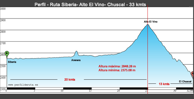Con esos ingredientes preparamos hoy una deliciosa etapa, una de las que más atrae a los ciclistas: Siberia- Chuscal - Siberia, en total 66 kmts. Tal vez la carretera más amplia y en mejor estado de las que recorremos cada domingo en nuestras bicicletas. En el papel un recorrido corto, pero como dicen “vaya y hágalo”.