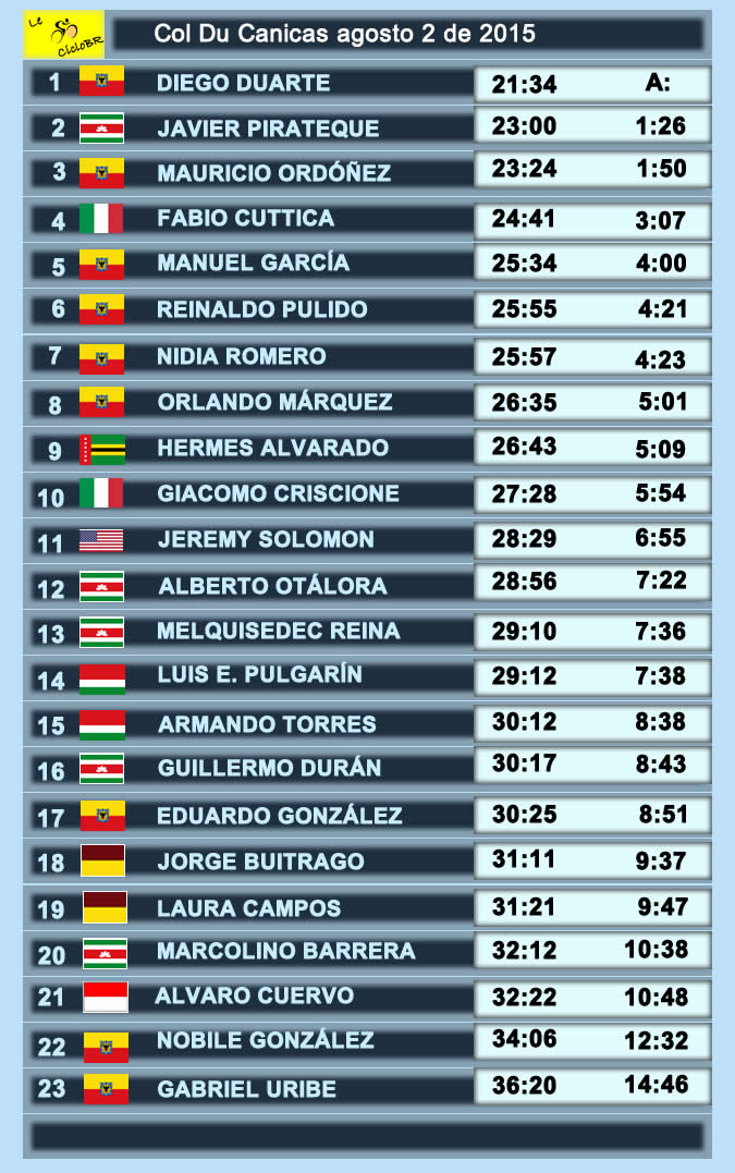 Sin más preámbulos les dejamos los resultados al mejor estilo del Tour de Francia.