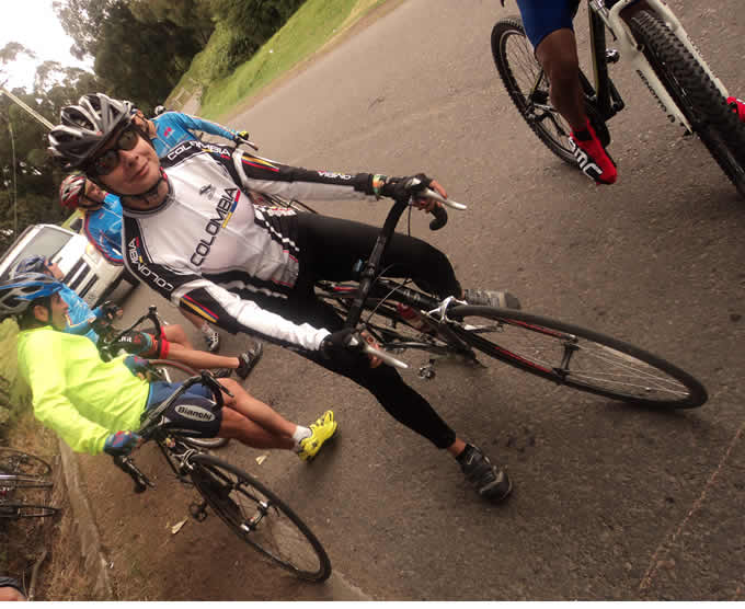 El colega Ingeniero Armando Torres nos colaboró como cronometrista y designó como sus jueces de control a Giaco y Fabio, quienes se encargaron de dar la partida y de revisar exhaustivamente las bicicletas de los competidores en busca de motores ocultos. Manuel nos colaboró con la señalización.
