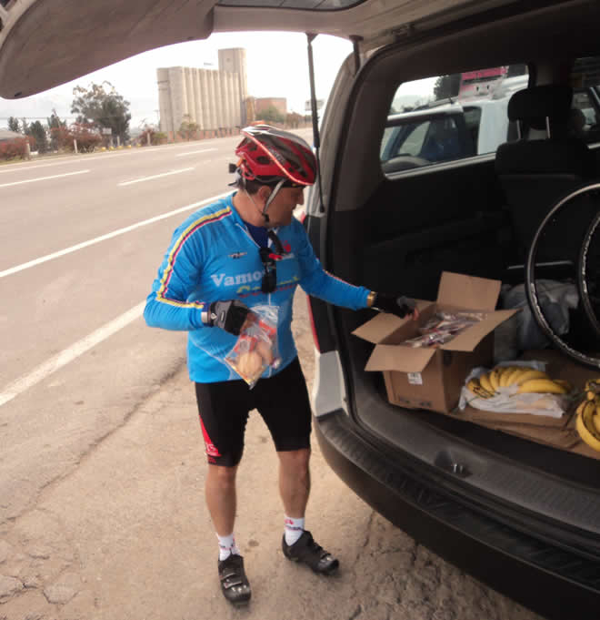 Se lució entregando a cada ciclista una bolsita energética, que contenía de todo: bocadillo, mini chocoramo, galleta, chocolatina, panelita y adicionalmente llevó bananos. Le agradecemos por la colaboración a el y a toda su familia, especialmente a su hijo y a su nieta que desde una moto y la camioneta tomaron excelente fotografías de la prueba.