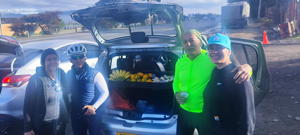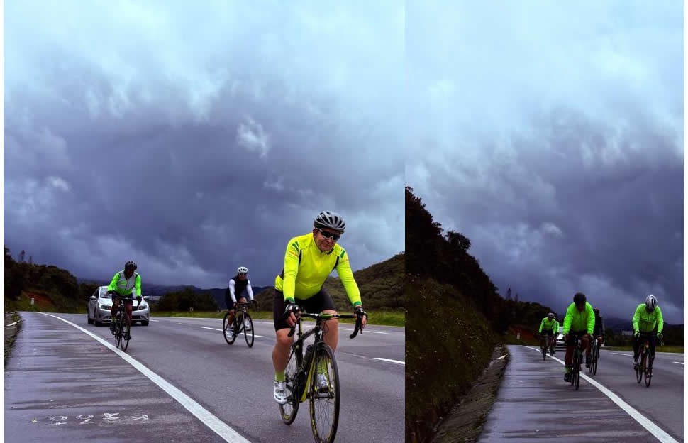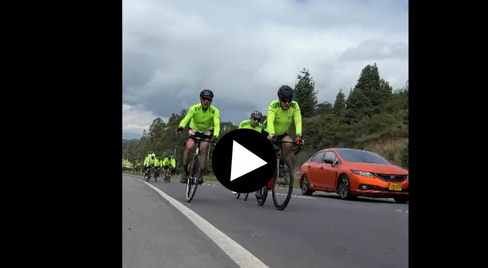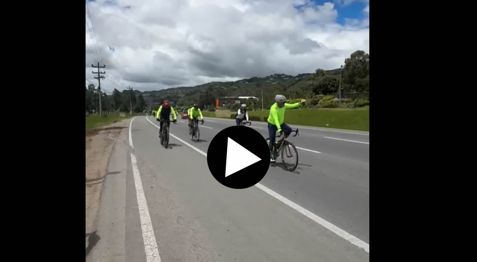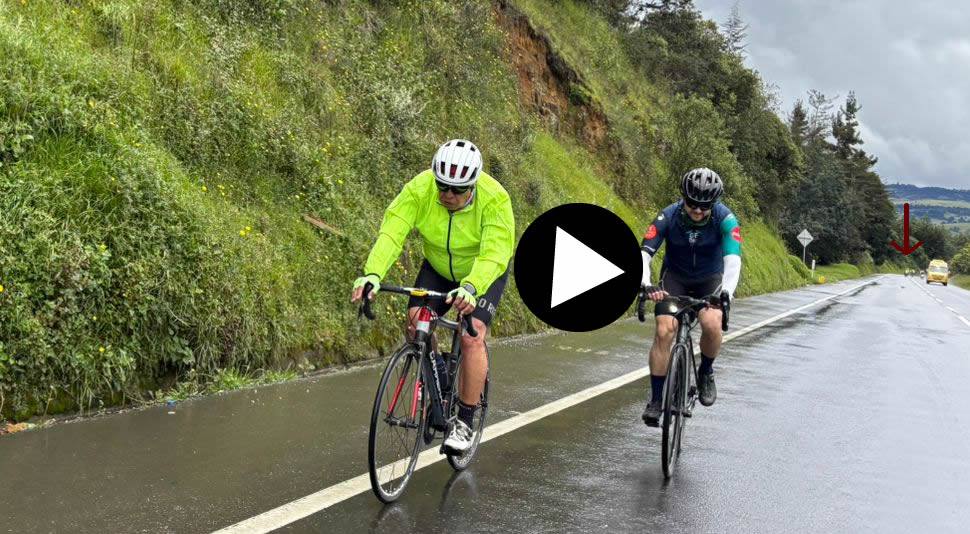 Duberney se quedó para ayudarle a montar la bici en el porta y luego, para recuperar el tiempo perdido se lanzó cuesta abajo; previamente le pidió el favor a Mayra y a Alejandra que lo filmaran en el descenso. Alcanzó una velocidad máxima de 90 kmts. . Los cazó en la subida al Roble.