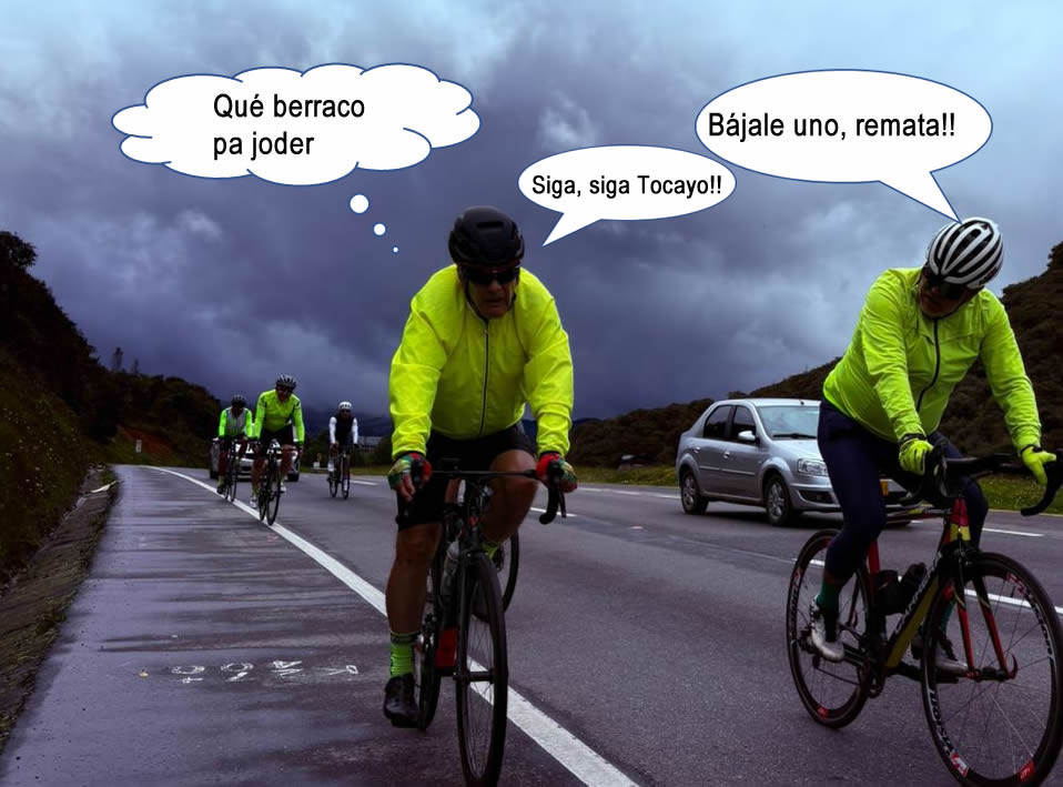 Pulga quería desquitarse y songo sorongo se fue hasta que se lo devoró el horizonte. Los repechos hasta el Sisga son de cuidado, subimos al ritmo de Márquez, Carrillo, con la lección aprendida prometió no "joder", así calladito se veía más bonito.