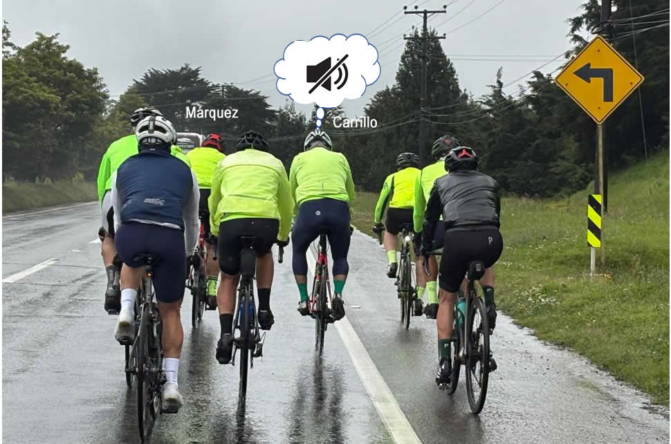 Siguiendo la modalidad que impusieron Guillermo y Javive hace unos meses, (una palomita como capos para los ñoños) esta vez pusieron a comandar al lote a Marcolino y a O.Márquez, quienes llevaron a sus compañeros hasta el peaje del Roble a su ritmo rotándose la cabeza del grupo.