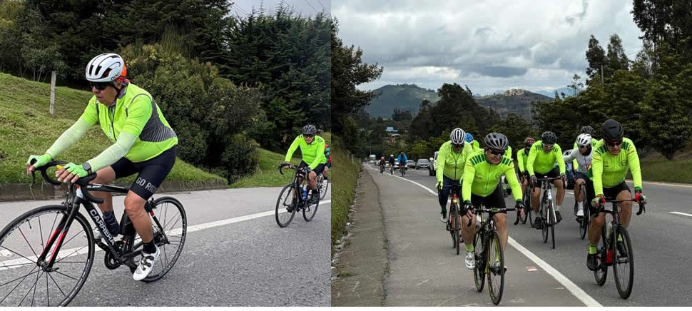 En la medida en que íbamos calentando piernas el sol se encargaba de disipar las nubes, así llegamos al peaje del Roble, Márquez y Pulga pasaron al frente en la subida escoltados por Luis Hebert, mientras el grupo cuidaba de a Marcolino, quien desafortunadamente no ha podido entrenar debido a que debe dedicarse a atender a Margarita y apoyarla en su tratamiento, mucha gracia que nos acompañe. Un saludo especial para Margarita, le deseamos de todo corazón que salga adelante en este proceso
