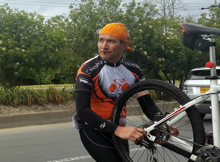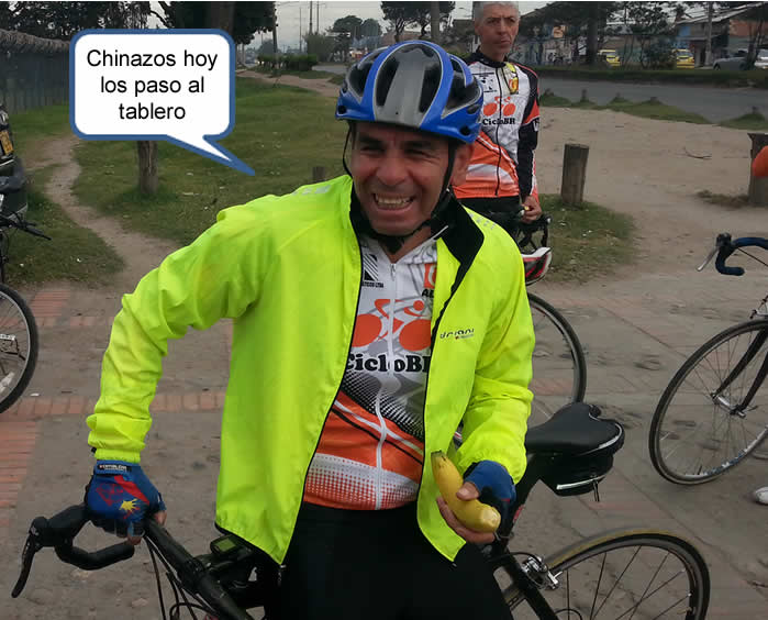 Jorge Buitrago quien pinchó a la salida y luego cerca de Mondoñedo. Con estos dos ya completo una seguidilla de tres pinchazos en dos salidas. Dice que ahora si va a ponerle unas corazas nuevas que tiene guardadas desde hace dos años; tenía la esperanza de que las actuales le duraran hasta el 2016, pero las mangueras de puro chismosas prácticamente se asomaban. Pero no se preocupe Jorge que le guardamos su cupito en la “B”, Ud. se lo merece por su buen rendimiento en el año lectivo. Pero por si acaso luego del cambio sigue pinchando, le recomendamos pasarse a estas llantas de cuarta generación: