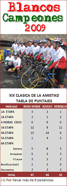 Con estos resultados la Tabla queda como aparece arriba a la derecha, los blancos son los nuevos flamantes campeones de la XIX Clásica de la Amistad 2009. Subcampeones los Azules y Verdes tercer lugar.