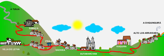 Los tres equipos, los duros de la prueba, partieron de Sutamarchán con destino inicial a la población de Sáchica, para lo cual recorrieron 16 kilómetros a buen ritmo, en un terreno rompepiernas. Hasta allí nadie cedió terreno. Pasaron el peaje y se inició al cuesta dura de aproximadamente 13 kilómetros.