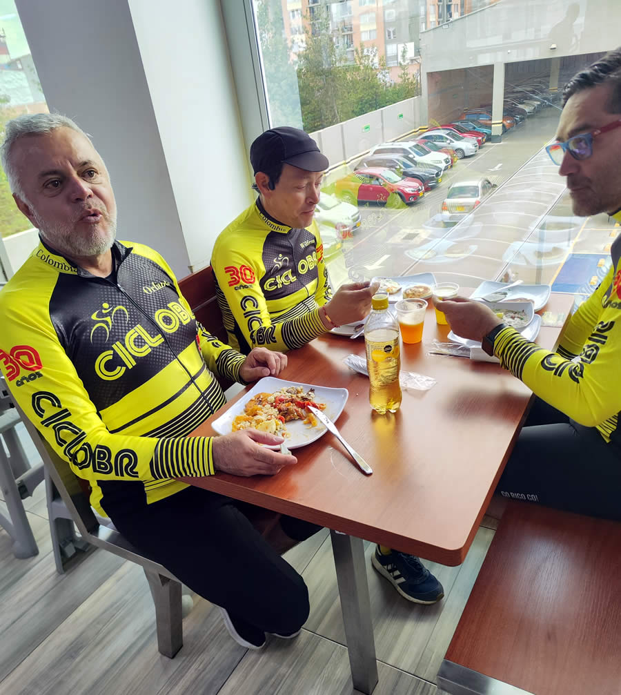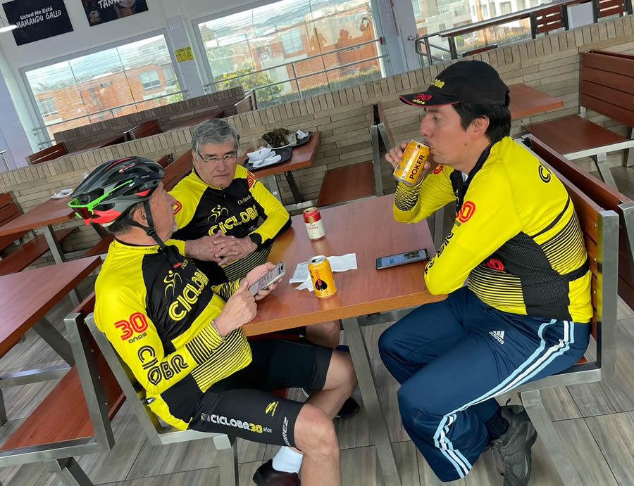Como no hubo parada para el desayuno en el Curubital, Wilfran, Javier y Orlando descubrieron que la cafetería del Supermercado Zapatoca en el segundo piso ofrece buenas opciones, que ellos aprovecharon para recuperarse del gasto energético. Otros prefirieron degustar un juguito de cebada para calmar la sed.