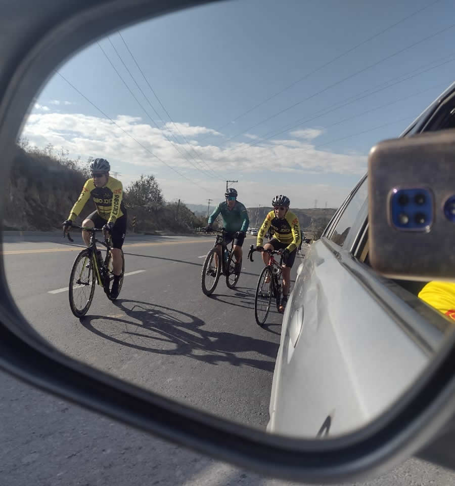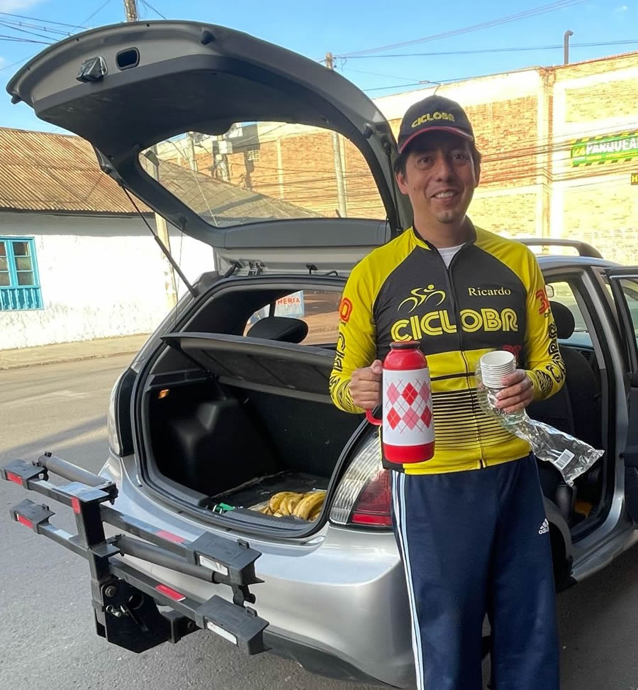 Nos acompañó con la moto escolta el Sr. Ricardo Velandia de Staff Cycling, afortunadamente solo tuvo que asistir a A. Otálora a la salida, pues sus neumáticos estaban bajitos de aire.