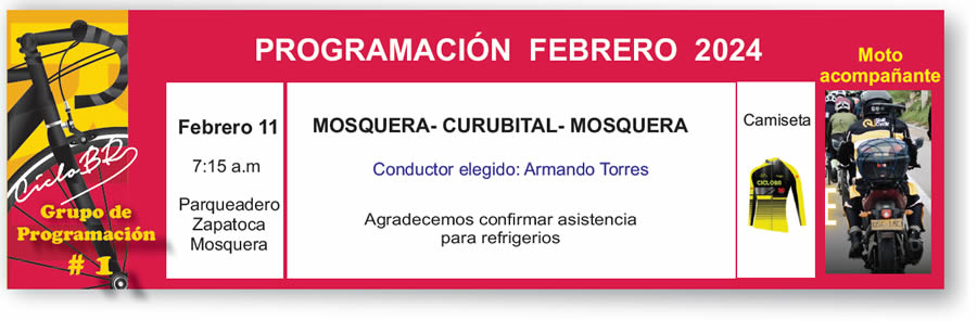 El grupo de Programación #1 (G1), conformado por Nobile, Marcolino, Armando, Edgard, Jorge M., Pacho y Melki, publicó la programación para la segunda salida dominical de febrero, decidieron esta etapa: