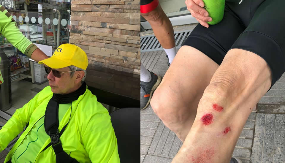 En ese interregno y faltando unos tres kilómetros del retorno a Siberia, quien les escribe esta nota sufrió una caída muy parecida a la que tuvo nuestro Egan Bernal, pues para evitar la brisa agaché la cabeza, con tan mala suerte que tropecé con un ciclista en la vía.