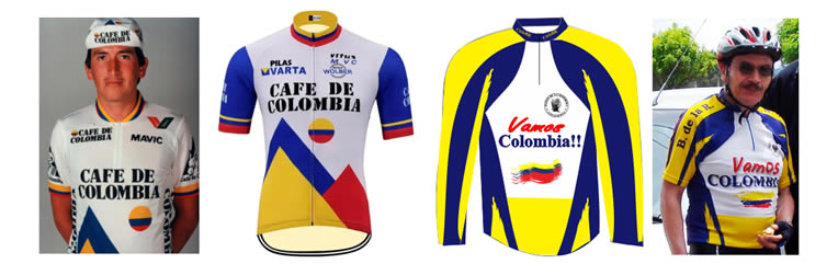 Les adelantamos que se trata de un diseño inspirado en dos “maillots” emblemáticos: la camiseta CAFÉ DE COLOMBIA que lucieron nuestros escrabajos en Europa y la camiseta VAMOS COLOMBIA, una de las primeras que tuvimos al inicio de CicloBR en los años 80 y que ya desapareció, no todos la conocieron.