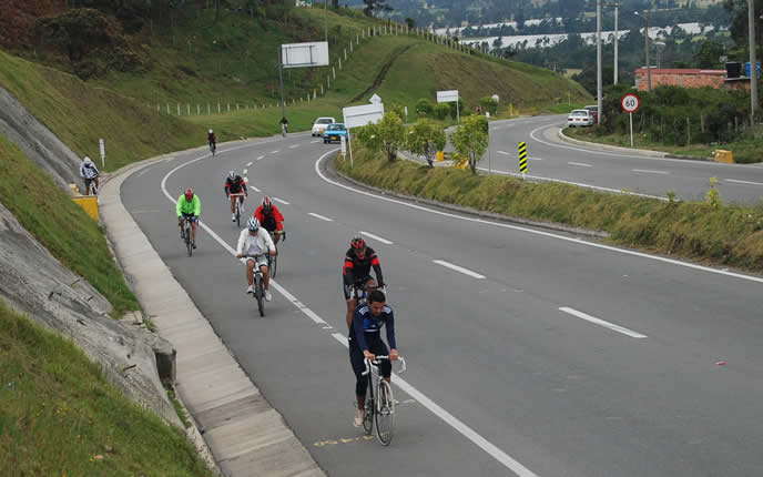 Los primeros 10 kmts hasta Puente Piedra sirvieron de calentamiento, al girar hacia Subachoque ya asomaban alguna goticas de sudor en nuestras frente y los músculos de las piernas estaban a punto. Nos reagrupamos en Puente Piedra y luego bajo el comando de Carlos Reina, Reinaldo, Alejo y Gabriel nos dedicamos juiciosos a “enrollar cadena” hasta que tuvimos a la vista el repecho de La Virgen, primera prueba para ver qué tan calienticos estábamos.