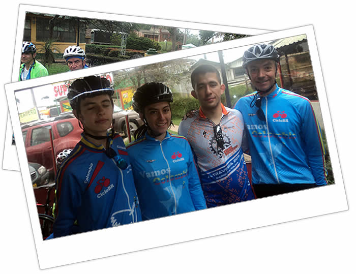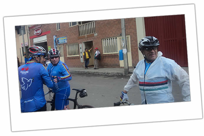 A La Pradera llegamos 17 de los 20 pedalistas que partimos. Como siempre ocurre en esa etapa, le dieron durito entre Subachoque y Pradera. Tal como lo mencioné arriba los Duarte, padre e hijo se llevaron a Paola y la mantuvieron lejos de su amigo Fabian, oigan eso no se hace, el pobre quedó atrás "pataleando" en su todoterreno, pero llegó a la meta, motivado por alcanzar a la veloz piloto.