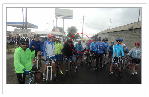 Pero para no preocupar a nuestros lectores hagamos la investigación de una vez, pues nadie da razón de él. Esto es grave, pues en en 29 años que llevamos con el grupo nunca se nos ha perdido un ciclista. Veamos las fotos de la salida a ver qué encontramos: