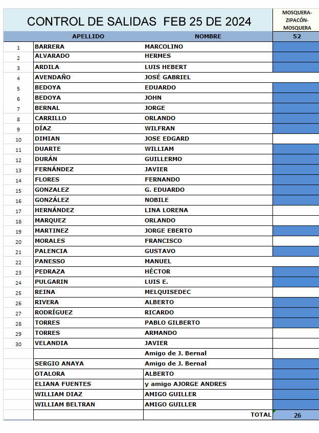 La próxima semana al cierre de febrero se publicará el listado de deudores, si alguno de ustedes no ha realizado pago de los meses de enero y febrero, o aún debe cuotas del 2023, todavía puede consignar para que no sea reportado. Nos da mucha pena, pero por favor tengan en cuenta que en cada salida dominical tenemos que pagar el costo del acompañamiento en moto y los peajes y ellos no nos fian.