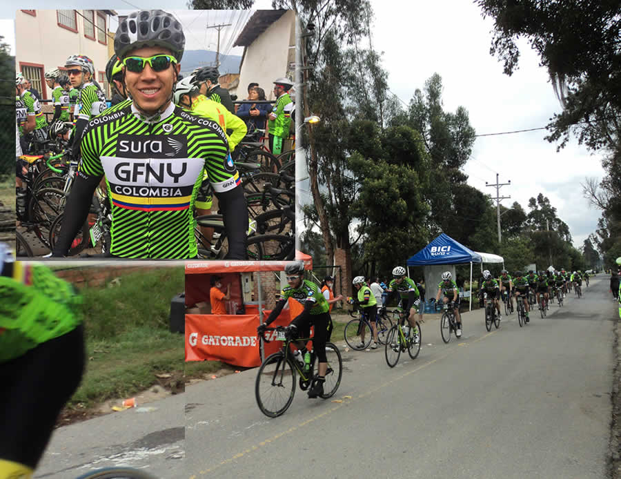 Pulga sugirió que en lugar de ir a Sesquilé y luego a Guatavita como estaba previsto, tomáramos la ruta Briceño, Sopó para subir al Salitre y llegar al cruce de Guasca, con el fin de ver pasar a los CicloBeres que hoy estarían compitiendo en la GFNY. “Es que si nos vamos por Sesquilé cuando lleguemos allí seguro que ya no alcanzaremos a ver al Chino”- dijo Pulga.