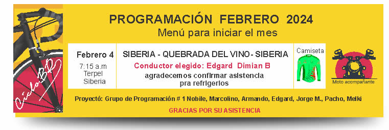 A esta primera convocatoria enviada por el Grupo #1 respondieron en total 17 pedalistas: así: Armando, Luis Hebert, Orlando M., John y Eduardo Bedoya, Orlando C., Javier F., Nobile, Guillermo, Héctor, Wilfran, William, Gustavo, Hermes, Pulga, Pablo y Chinazo.