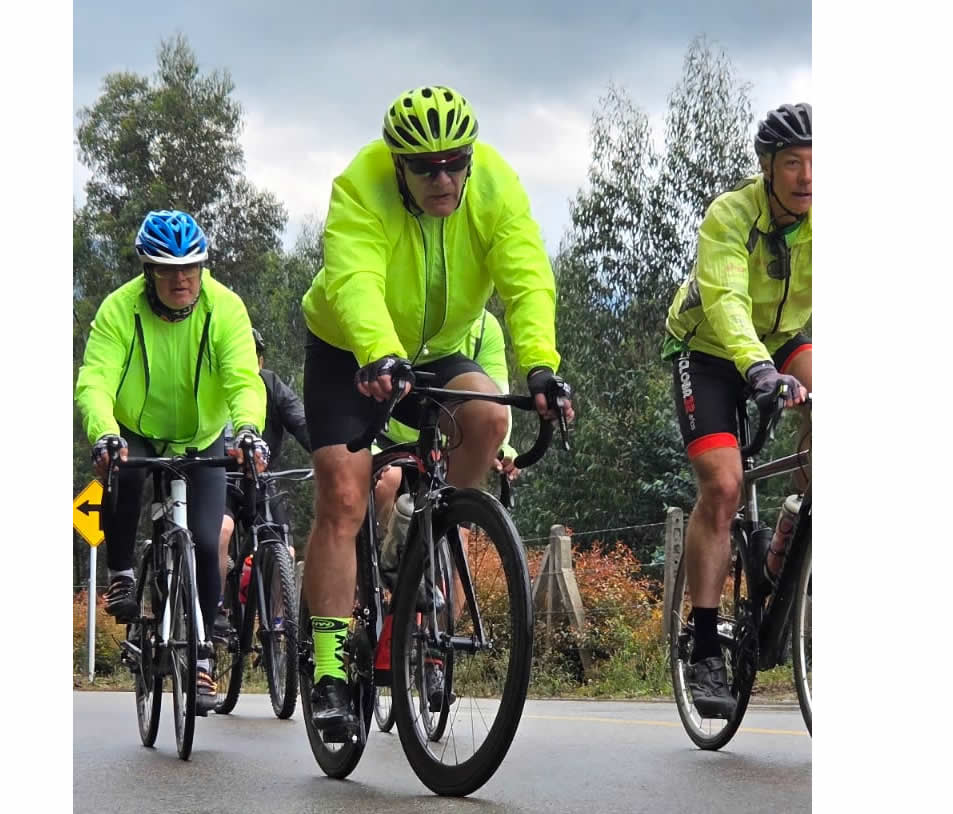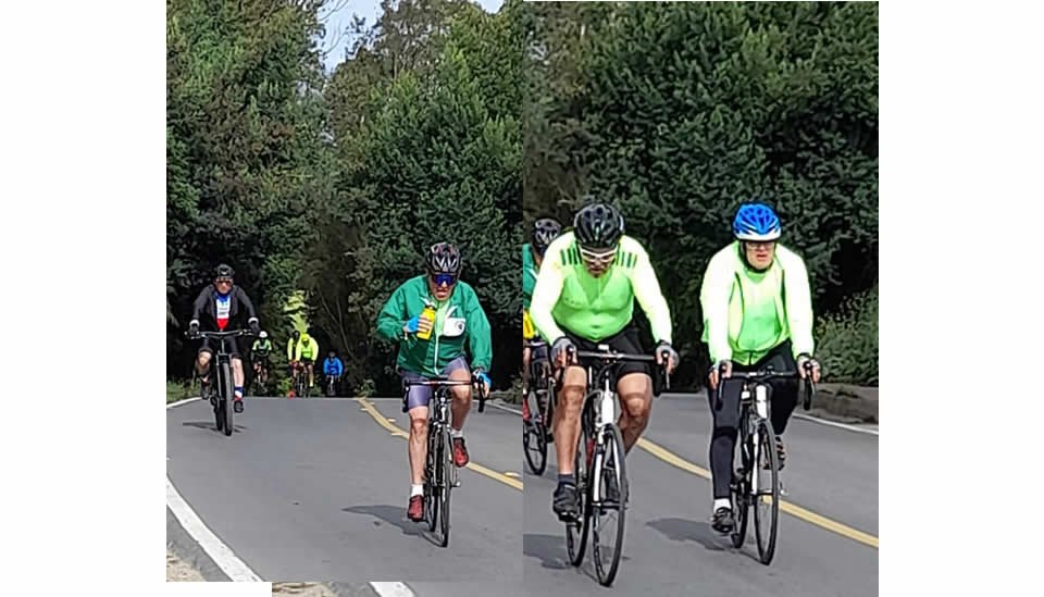 En el camino hacia Tenjo Héctor sufría tratando de no perder la rueda del grupo, abrigaba la esperanza de que le bajaran un puntico para poder conectar, pero no le obsequiaron ni una miradita atrás, adivinen quien conducía el grupo sin contemplación aplicando la máxima, "el que se quede que coja buseta", si señores el mismo Pulga en persona.