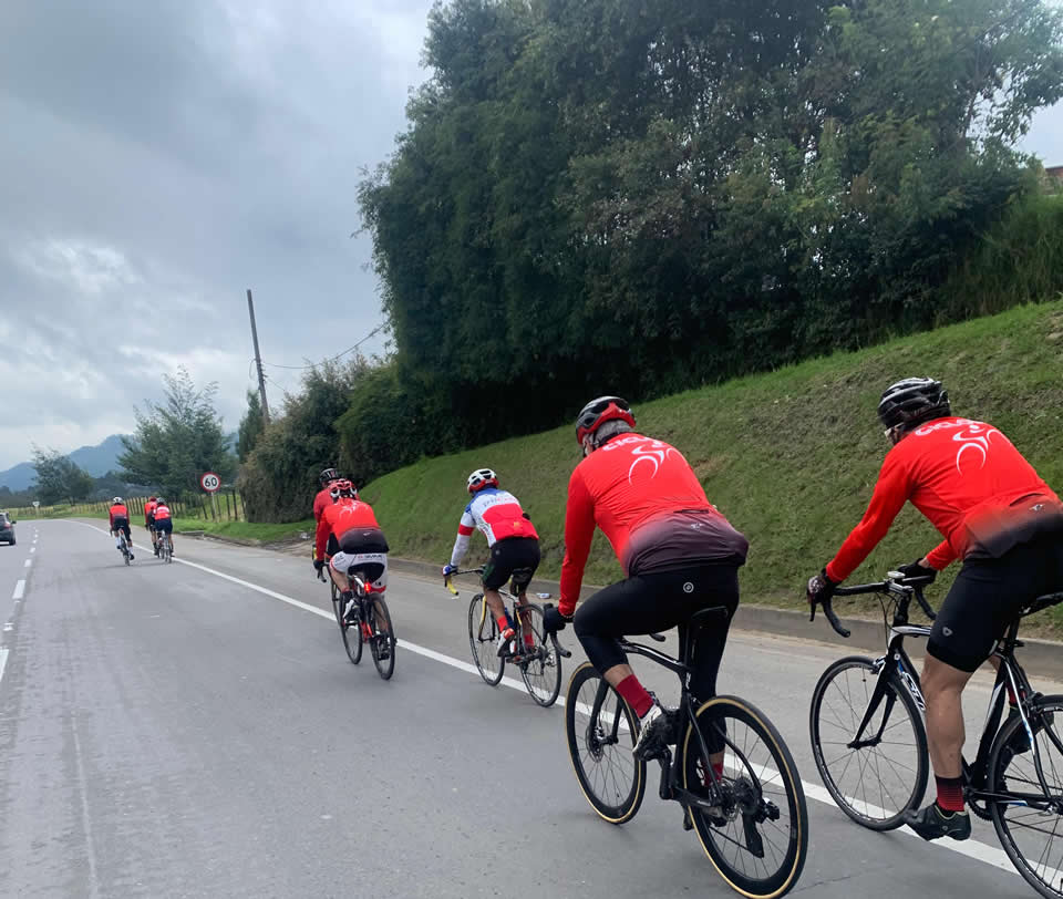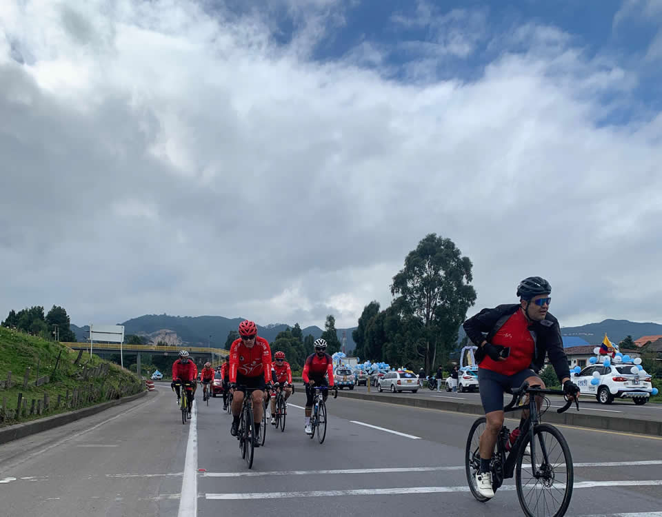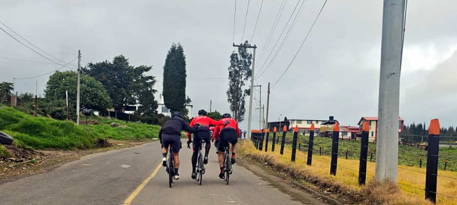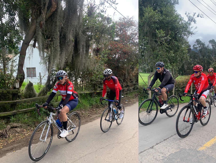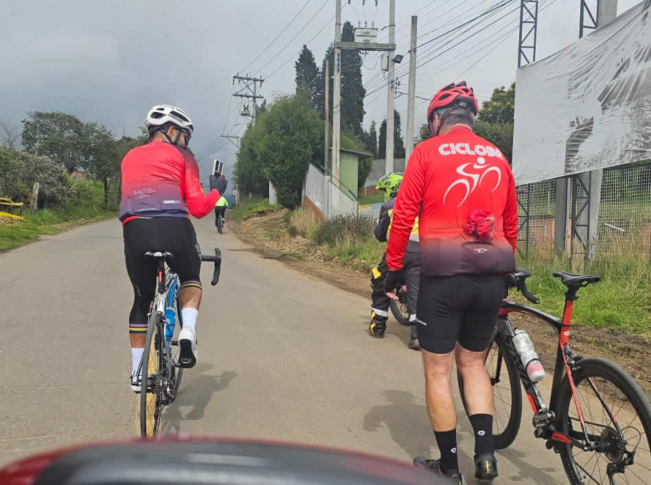 Y bueno, Pablo, fiel a su estirpe, sacó fuerza hasta de las medias y conectó valientemente en la rotonda de entrada a Cajicá, donde nos reencontramos por breves segundos... porque enseguida Guillermo, William y Alberto prendieron la moto, sin una pizca de compasión. Paulina en sus adentros ya no pensaba, rezaba: “¡Estos no tienen corazón ni alma!” A duras penas me adelanté a controlarlos y rearmar el pelotón, y así logramos reagruparnos por unos 3 o 4 kilómetros.