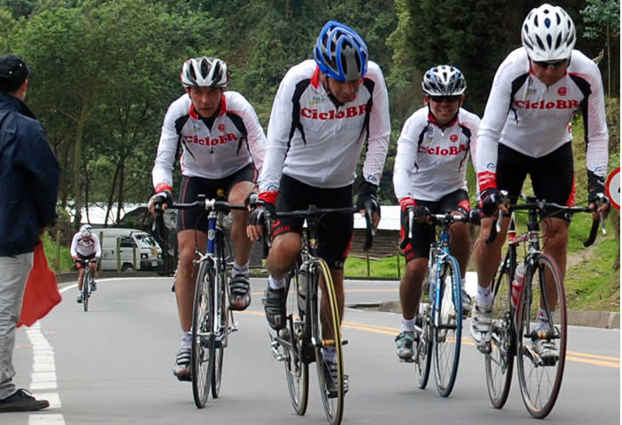 Mientras ellos ya iban subiendo, yo seguía abajo en el kilómetro 27 en la encartada más tenaz. Partí primero decidido a tomar una ventaja que me permitiera en lo posible llegar al alto sin que me dejaran tirado en la carretera. Casi lo logro, Armando que iba escoltándonos cronometraba y me contó que en la mitad del camino les llevaba 6 minutos pero como ocurría con los escapados en el Tour, se pusieron las pilas, no más pasto y a un kilómetro me sobrepasaron despiadadamente, Otálora, Molano, Duarte y a 500 metros Eduardo y Miguel.