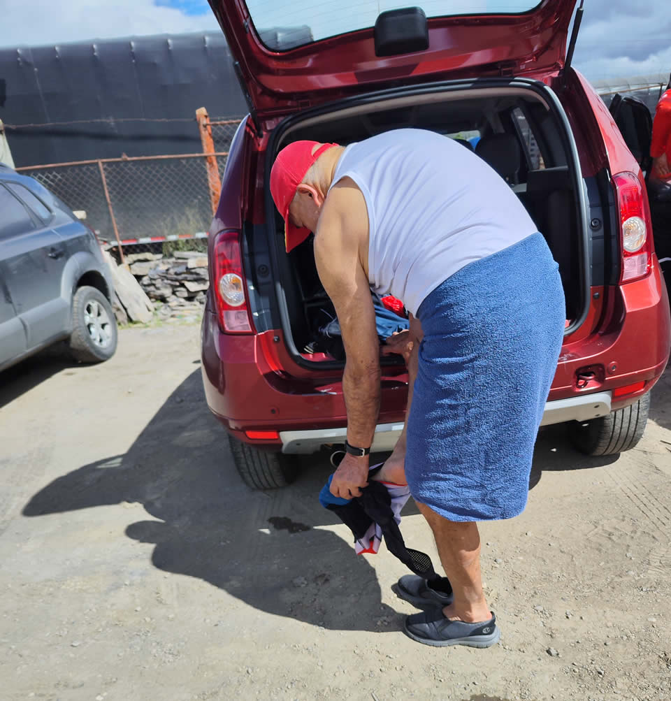 Javier llega con su vehículo cargado de bananos, galletas, bocadillos y juguitos de caja, qué pena con el, hoy tuvimos una muy pobre asistencia. Javi dice que no hay problema, sus hijos van a tener onces para toda la semana y tomarán sorbete de banano por los menos dos dias.
