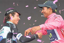 Rigoberto Urán, subcampeón del Giro 2013, aspiraba este año a ganar esa carrera, pero la decisión de los directivos del equipo Movistar de no llevar a Nairo Quintana al Tour e inscribirlo en el Giro fue fatal para sus aspiraciones, pues el de Boyacá no tiene por ahora rivales en la montaña. Una lástima, pero no podían subir los dos al escalón 1 del Podium.