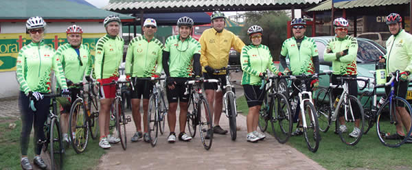 Carolina y los Duarte optaron por regresar vía Patios, los demás iniciamos el descenso. A pocos kmts del Salitre el grupo se reconfiguró y así marchamos un buen trecho. En el camino encontramos una prueba de triciclos para discapacitados, aquellos valientes que muchas veces hemos visto en carretera en posición casi horizontal, en sus máquinas con pedales para manejar con las manos.