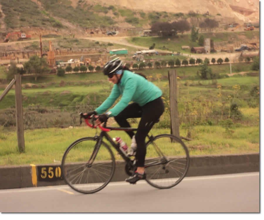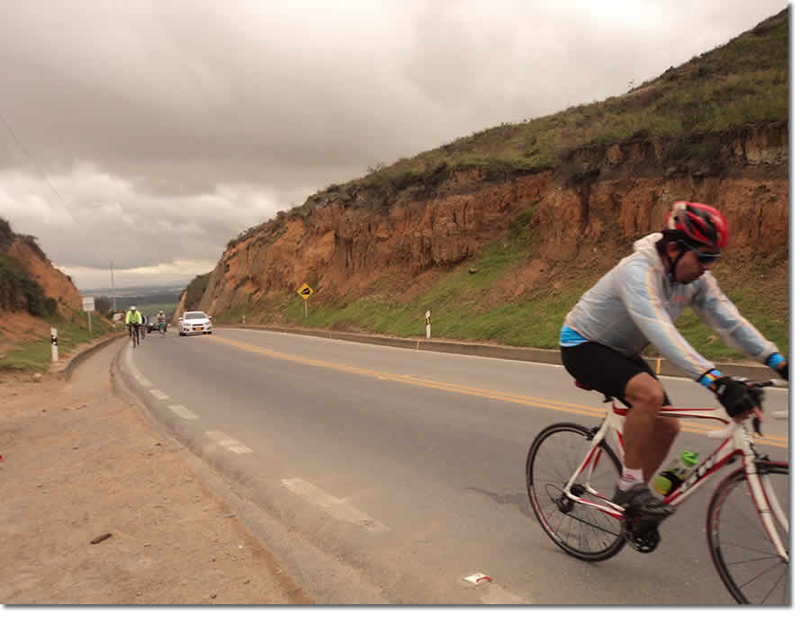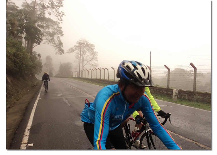 El que si estaba dichoso era Julio César Preciado, un colombiano que reside hace bastantes años en Estados Unidos, hacía tiempo quería hacer un buen recorrido montañoso en su patria para recordar viejos tiempos. En la Florida la mayor inclinación que encuentran es cuando pisan alguna tapa de Coca-Cola con la bicicleta pues para encontrar cuesta deben desplazarse muchos kmts al norte.